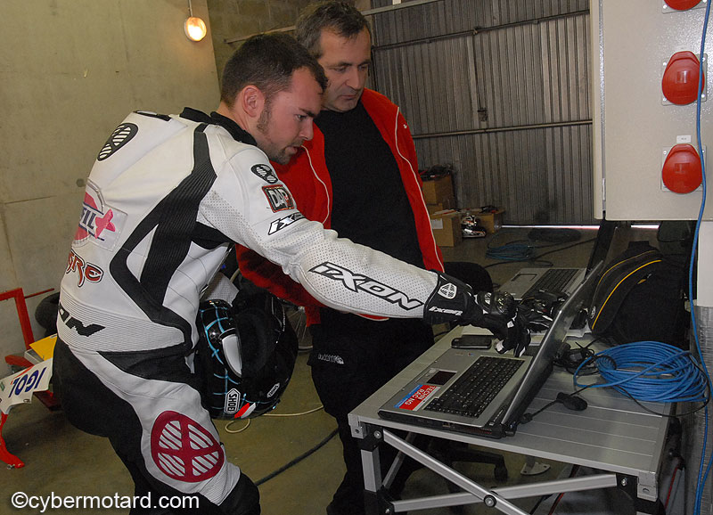 19H: Nous sommes "scotchés" à la 45ème place. La moto est devenue très difficile à emmener car elle louvoie beaucoup. Problème de DTC ("traction control"), problème de châssis ou de pneus, nous nous posons beaucoup de questions.